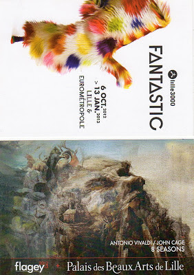 Une carte de Lille (la rue des Vieux Murs dans le Vieux Lille) et je reconnais très bien cet endroit que j'ai découvert au mois d'août avec Nadine. J'ai même ressorti la photo que j'avais prise sous un autre angle. Pour finir, de jolies cartes pour annoncer des expositions artistiques "FANTASTIC" et un concert inédit au Palais des Beaux-Arts de Lille (le concert est passé, si vous vouliez vous y rendre, il faudra attendre une autre occasion. Il a eu lieu le 24 octobre 2012).