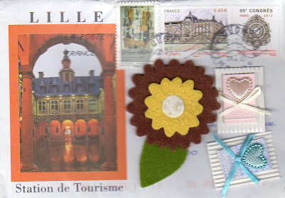 Reçus de mon amie Nadine Lenain (mamymail.over-blog) une bien jolie enveloppe avec de très beaux timbres poste (dont le musée d'Orsay) et un contenu non moins touchant.